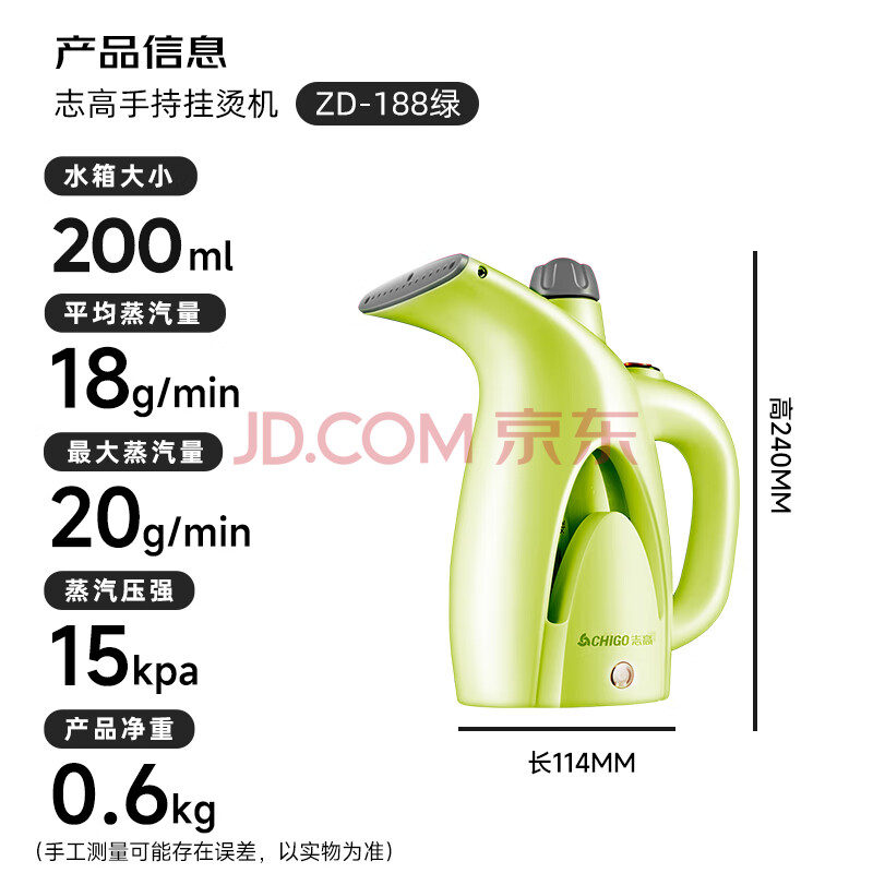 商品相册:志高(CHIGO)手持挂烫机家用20g/min大蒸汽电熨斗蒸汽刷200ml大水箱便携小型烫衣服熨烫机迷你熨衣服 ZD188第