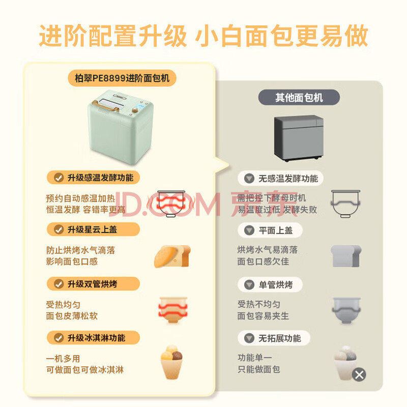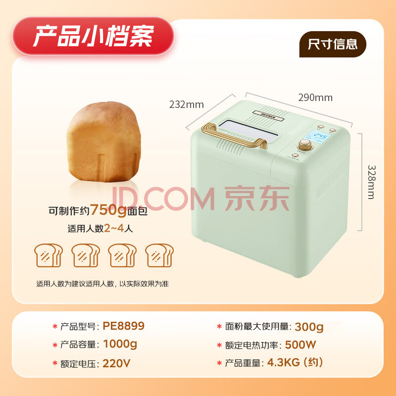 商品相册:柏翠(petrus)面包机烤面包机和面机全自动揉面家用冰淇淋PE8899 第1张/共8
