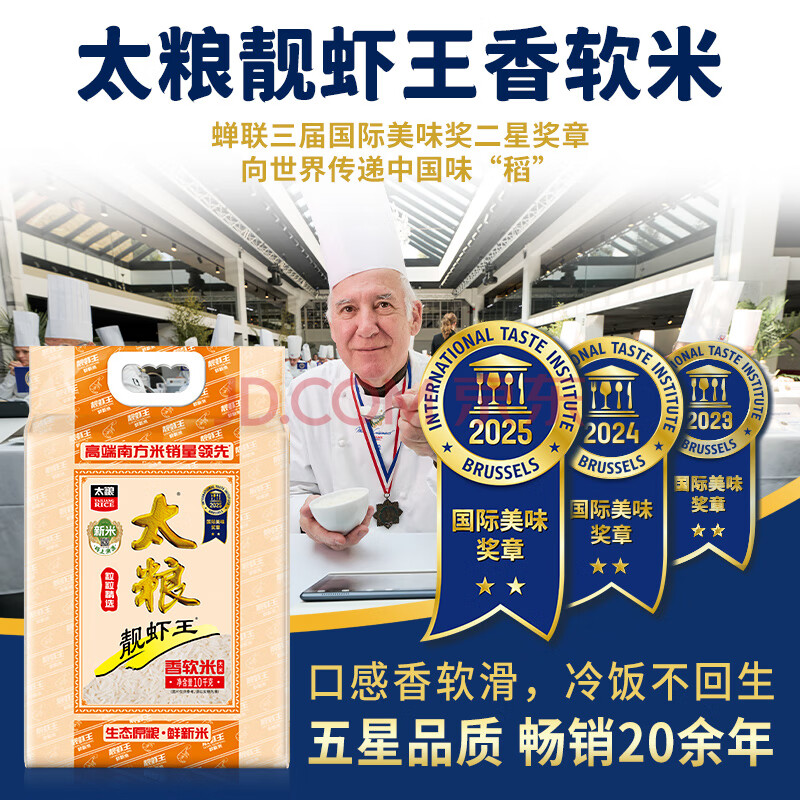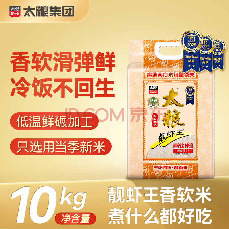 商品相册:太粮靓虾王香软米20斤 油粘米籼米10kg 长粒猫牙米 当季新米第1张/共7