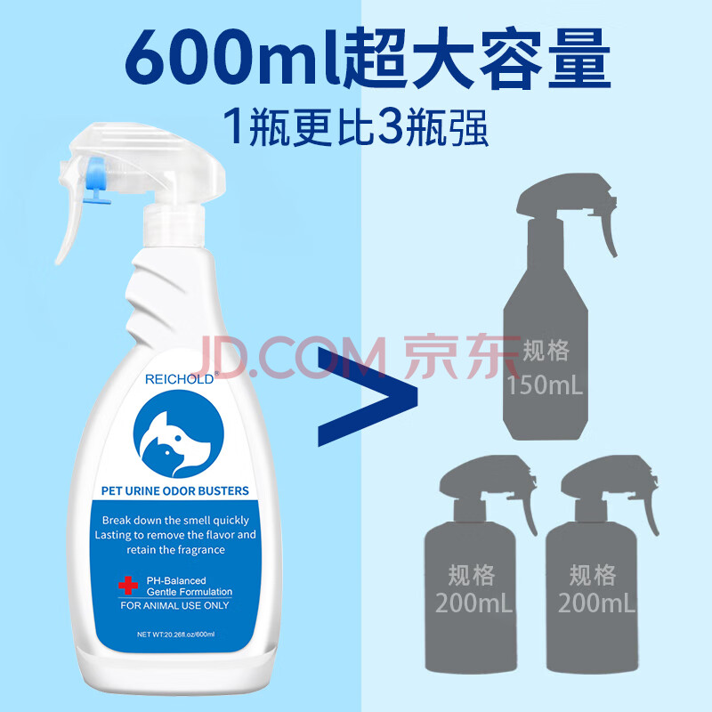 商品相册:REICHOLD尿味克星600ml*1瓶猫尿除味除臭喷雾猫狗尿植物提取分解祛味第1张/共9