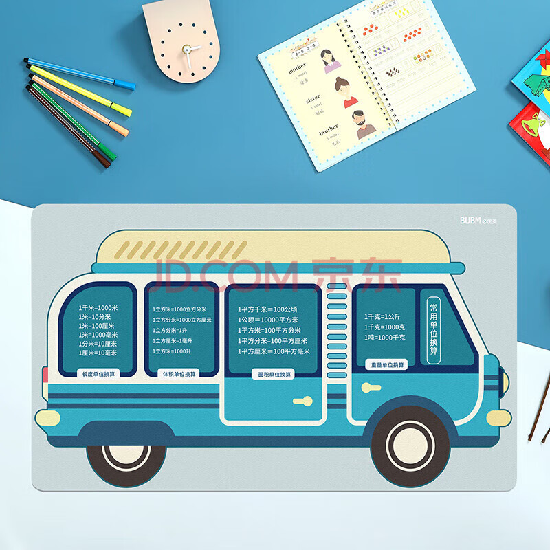 商品相册:BUBM 学习桌垫 学生写字桌面垫皮质防泼水书桌垫儿童记忆单位换算表鼠标垫680*400mm 蓝色第