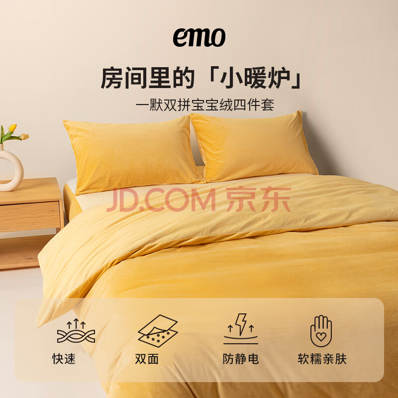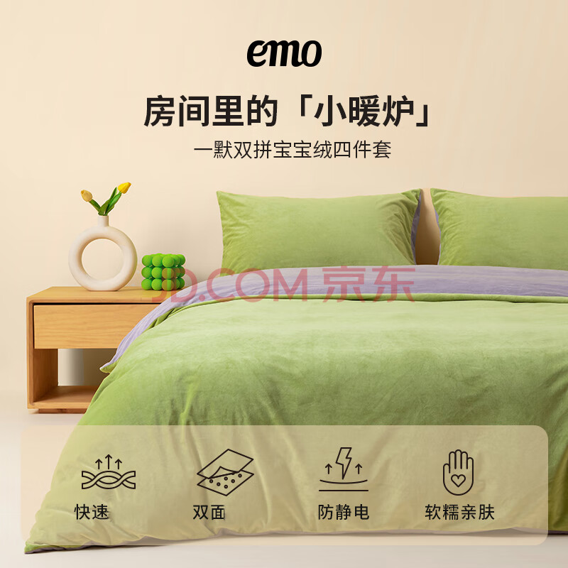 商品相册:一默 宝宝绒四件套 秋冬 保暖加厚 床上用品 被套床笠枕套绒 龙井叠翠第1张/共8