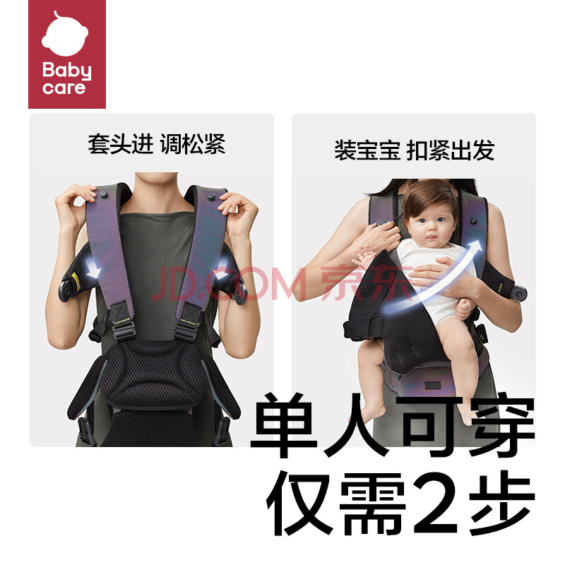 商品相册:babycare婴儿背带腰凳Free减压四季轻便单人穿脱宝宝外出抱娃神器 暮夜黑第