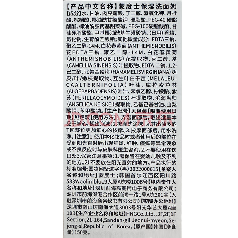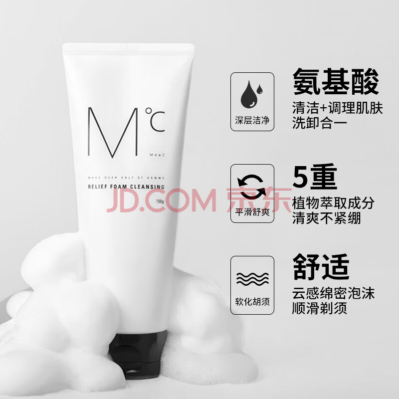 商品相册:蒙度士(MdoC)男士氨基酸泡沫洗面奶150g深层清洁祛痘去黑头粉刺保湿洁面乳膏第