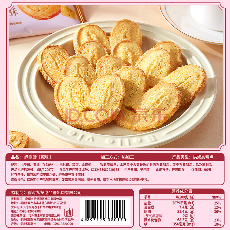 商品相册:九龙港品原味糕点蝴蝶酥180g香港特产饼干点心糕点手信礼盒休闲零食伴手礼第