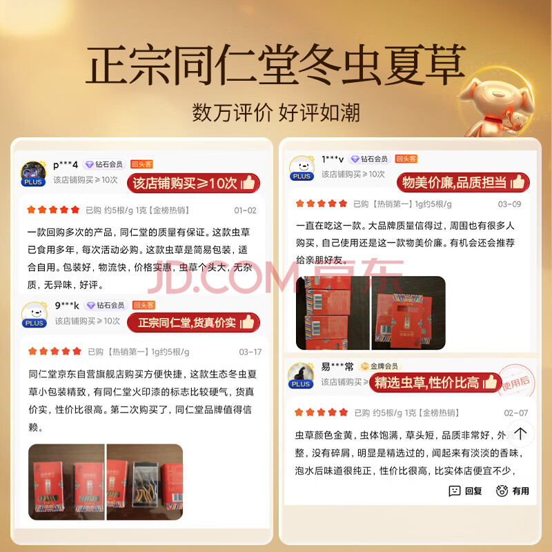 商品相册:同仁堂品牌冬虫夏草约5根/g1g约5根干虫草滋补品营养品 礼品北京同仁堂第