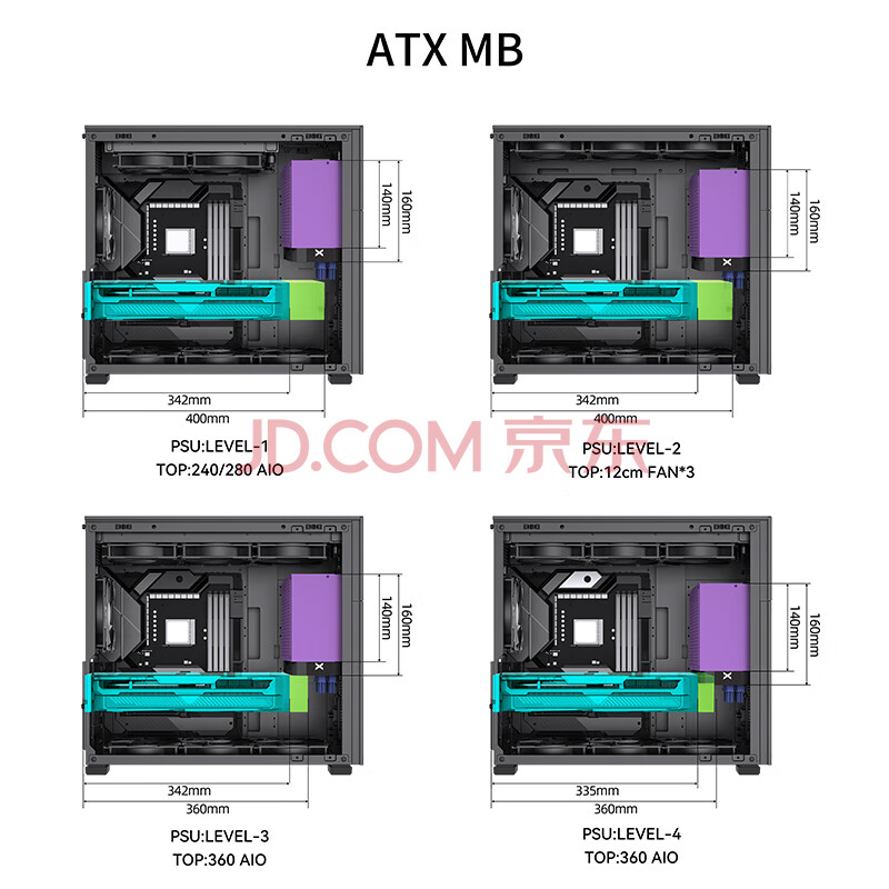 商品相册:乔思伯(JONSBO)松果D41 MESH版黑色 ATX机箱(双360冷排/ATX电源/Type-c Gen2 10Gbps+/垂直风道/长显卡)第