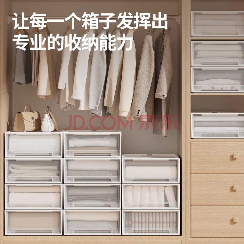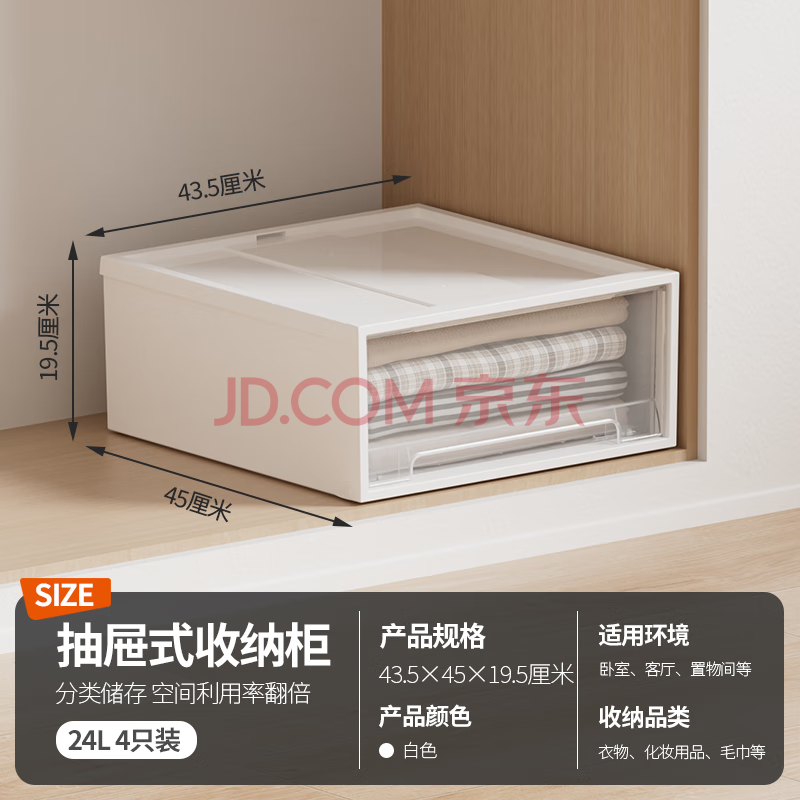 商品相册:禧天龙抽屉式分隔收纳盒家用衣柜收纳神器大容量储物盒 24升4个装第