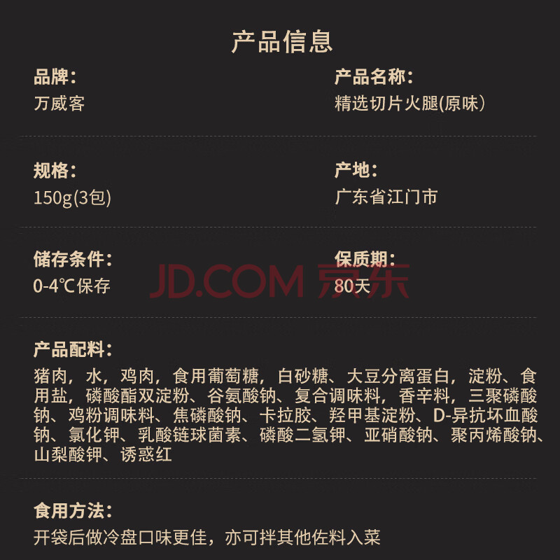 商品相册:万威客 精选切片火腿150g 火腿片早餐三明治午餐肉香肠牛肉熟食烧烤食材第