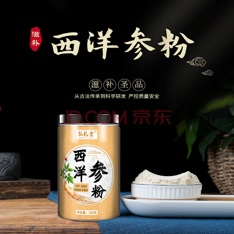 商品相册:弘礼堂 西洋参粉400g(200g×2瓶) 花旗参超细粉 西洋参片磨粉礼品礼袋第1张/共7