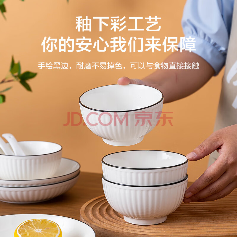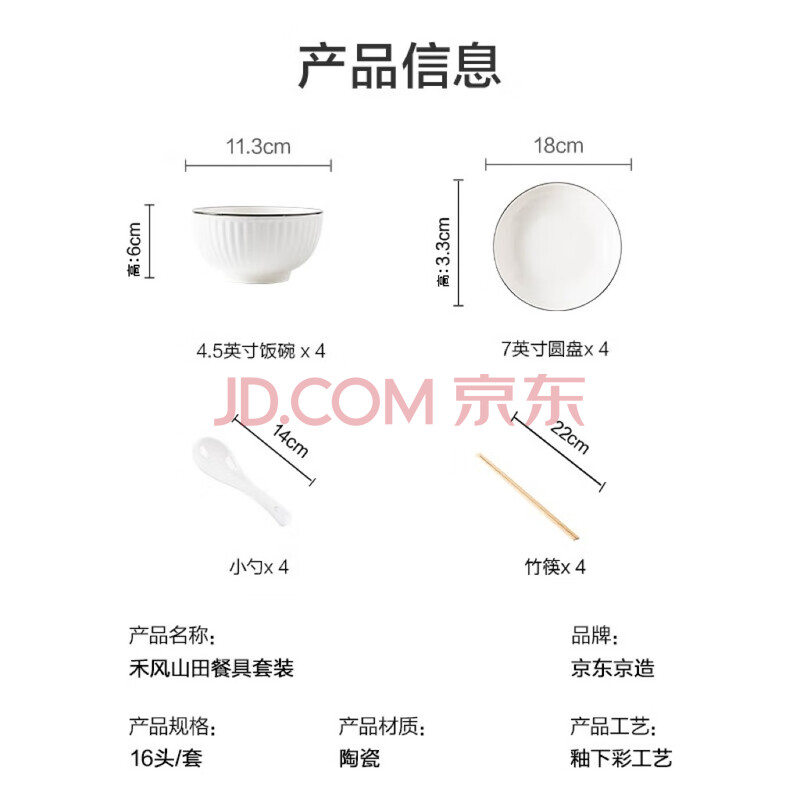 商品相册:京东京造 碗盘餐具整套 碗具碟子套装乔迁之喜陶瓷家用 禾风山田16头第