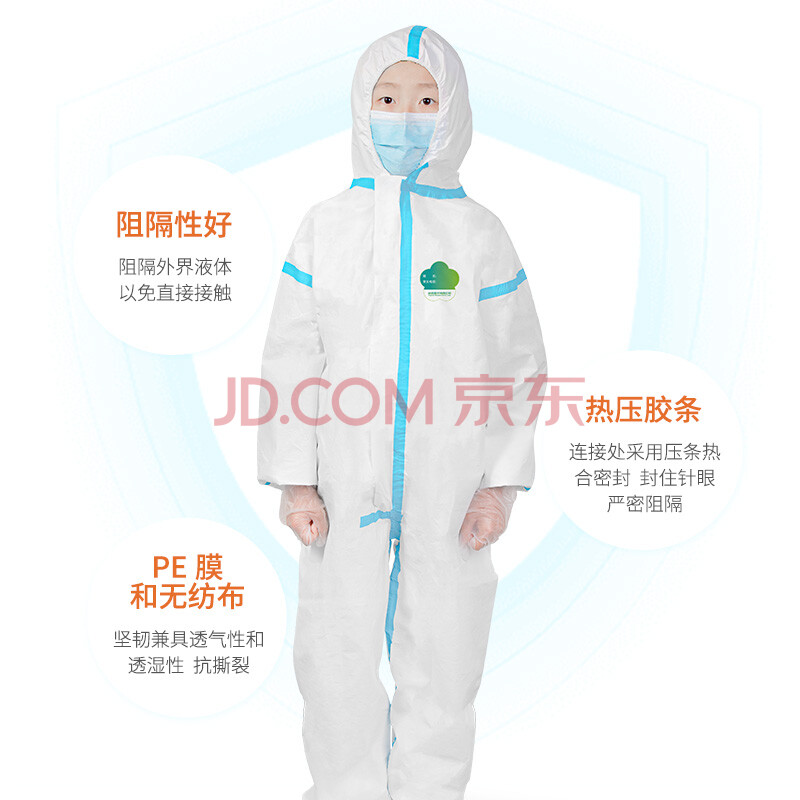 商品相册:HANASS 医用一次性隔离衣儿童款 医用防护 隔离服 透气带帽无纺布连体式男女孩通用升级胶条型(130-150cm)第1张/共8