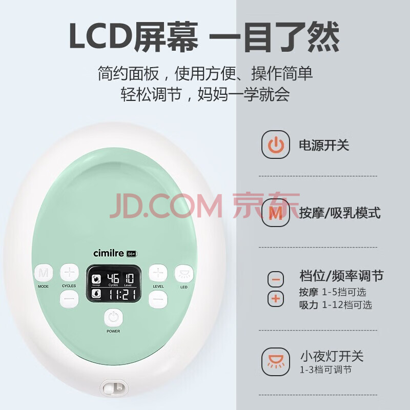 商品相册:喜咪乐(CIMILRE)吸奶器 电动双边吸乳器2000mAh可充电式挤奶器韩国进口S6Plus第