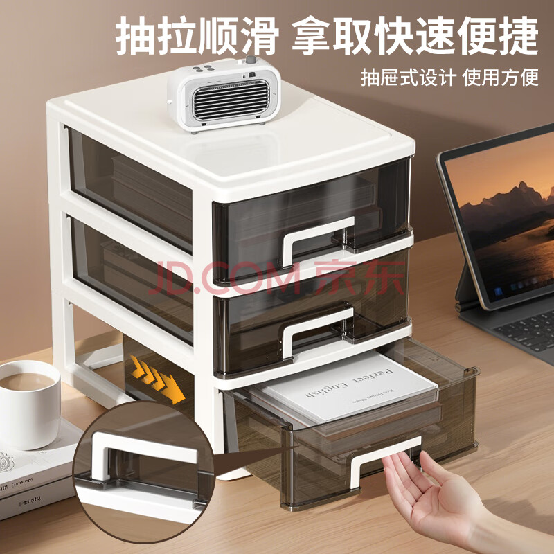 商品相册:金隆兴桌面收纳盒办公室a4透明抽屉收纳箱收纳柜化妆品书桌储物整理箱 第