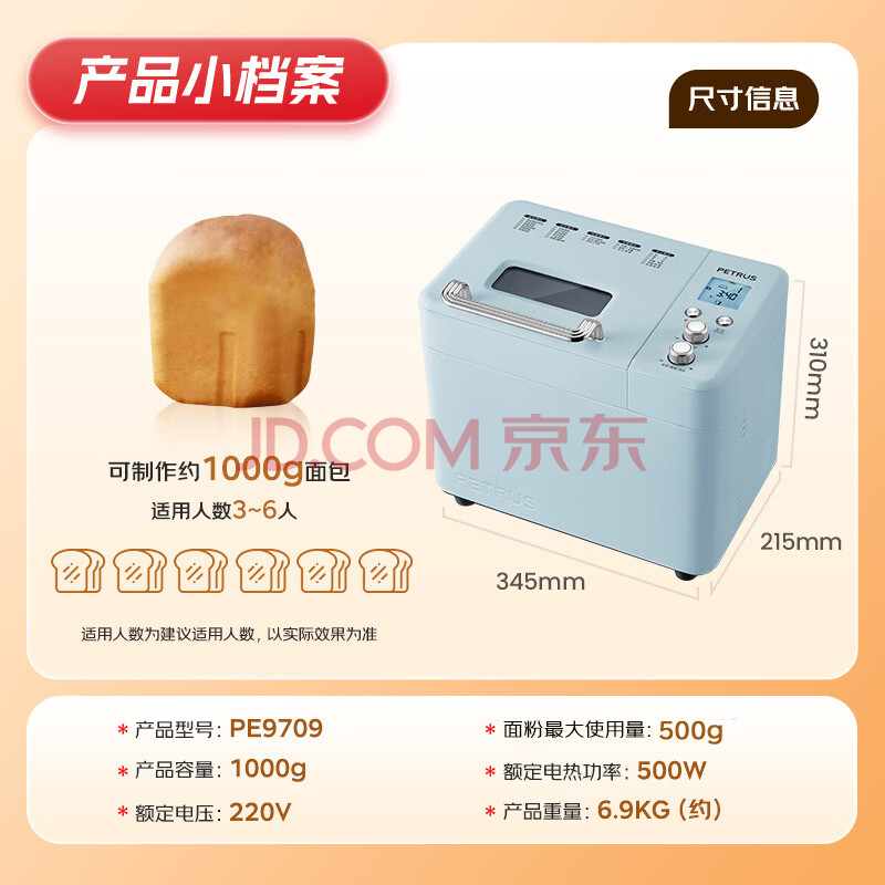 商品相册:柏翠面包机烤面包机家用全自动多功能和面机多士炉冰淇淋肉松PE9709第