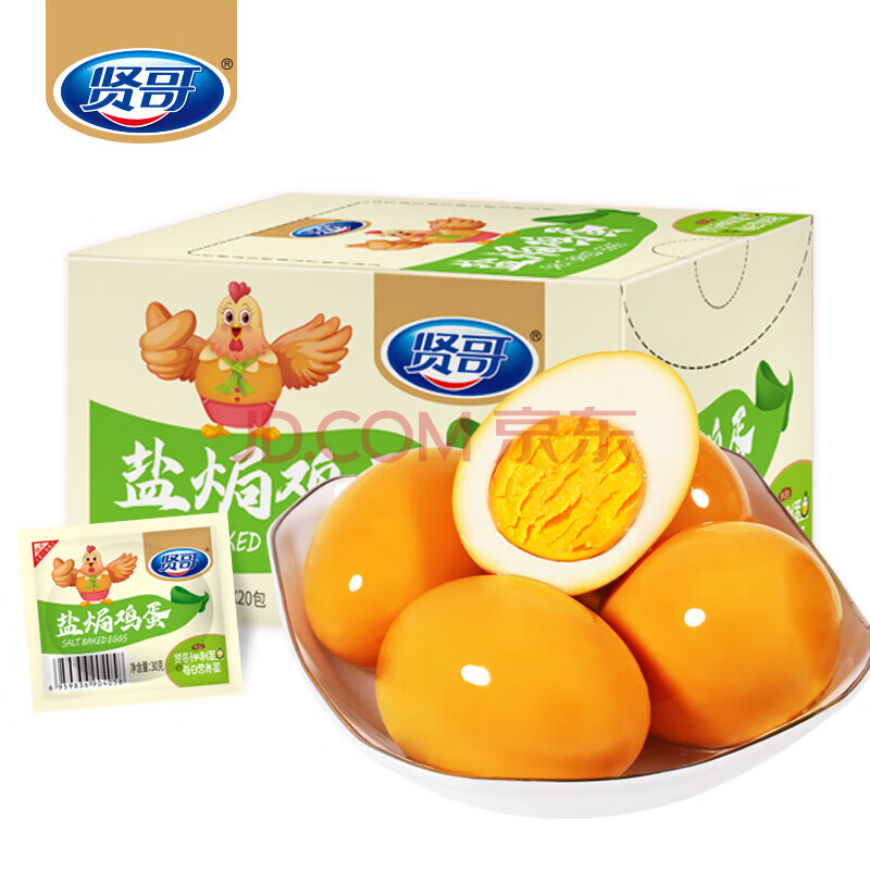 商品相册:贤哥盐焗鸡蛋 休闲零食 即食熟食卤蛋营养早餐泡面搭档盐焗味30g*20枚第1张/共5