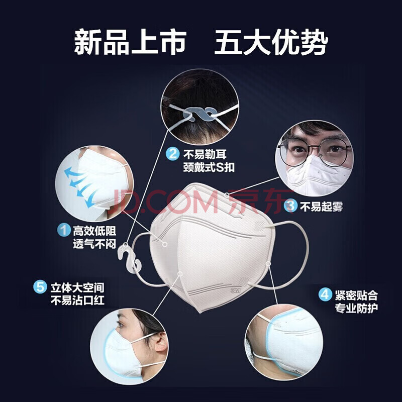 商品相册:3M口罩kn95口罩立体舒适防尘防晒防飞沫防雾霾颗粒物细菌过滤≥95% 第