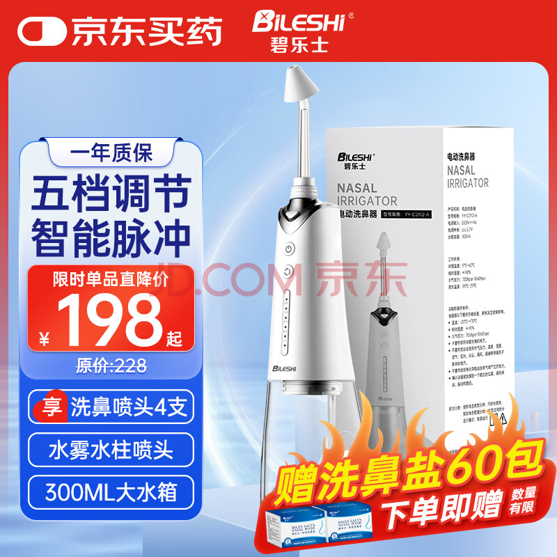 商品相册:碧乐士(bileshi)洗鼻器电动成人儿童缓解鼻窦炎冲洗喷雾家用鼻腔清洗器鼻塞通鼻器第