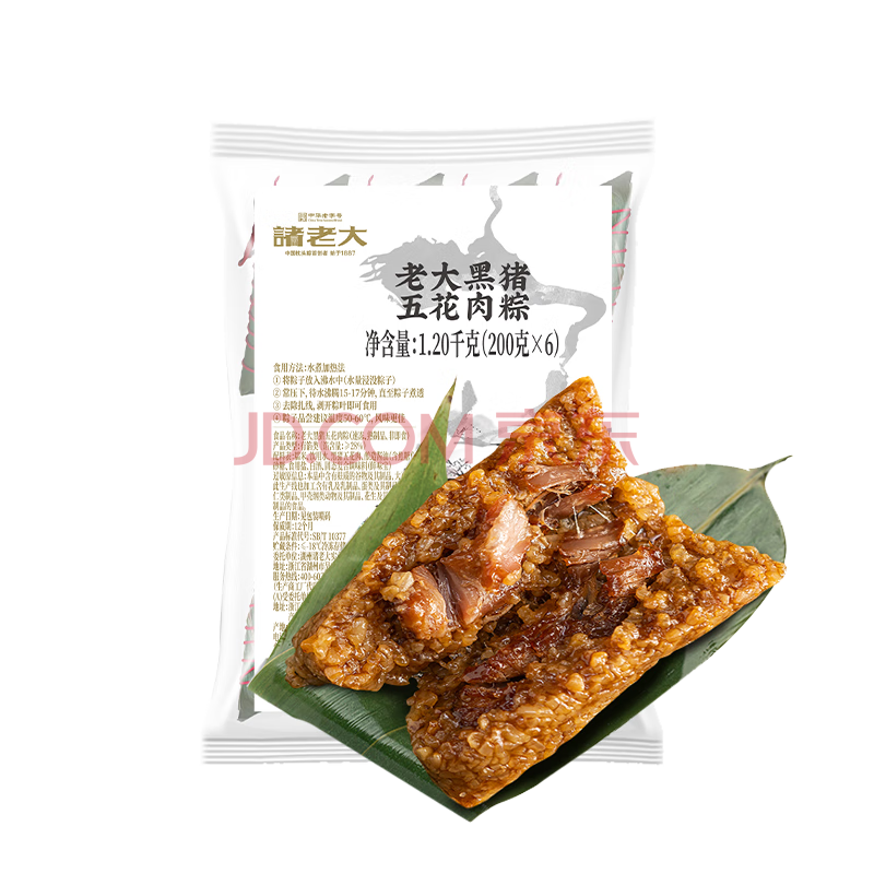 商品相册:诸老大速冻肉粽子黑猪五花肉大肉粽200克*6只中华老字号生鲜早餐粽第