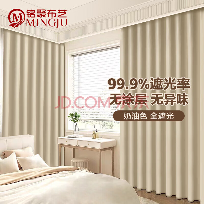 商品相册:铭聚布艺(MINGJU)窗帘 全遮光窗帘成品窗帘布遮阳帘涤塔夫奶油色挂钩式1.5*2.0单片第
