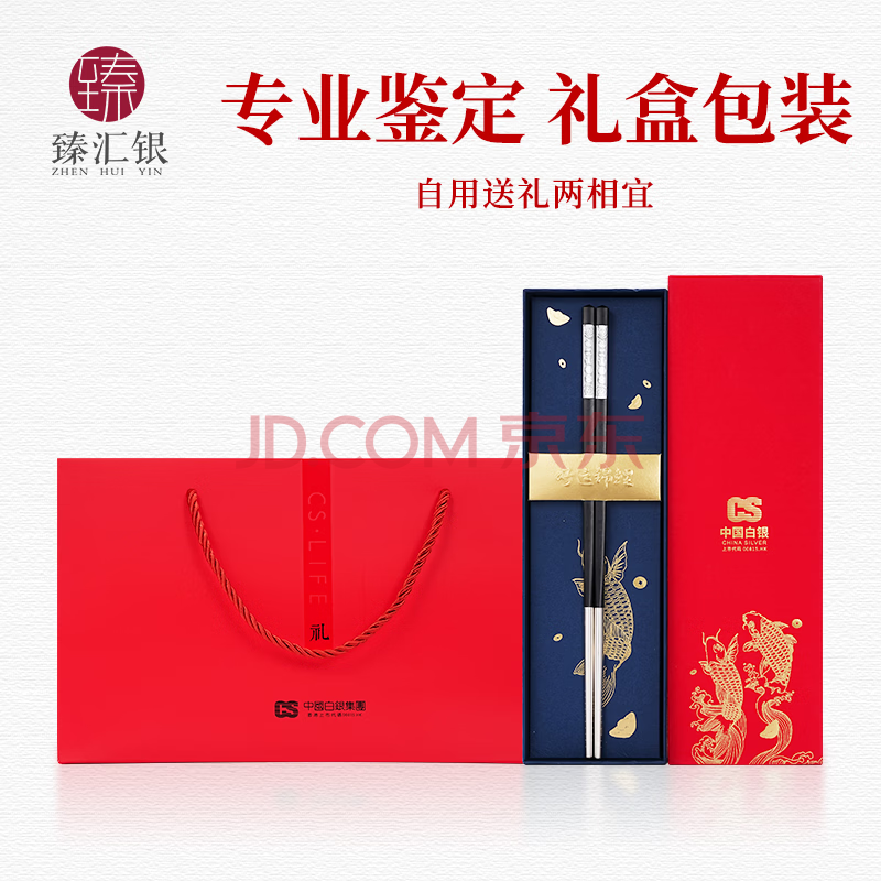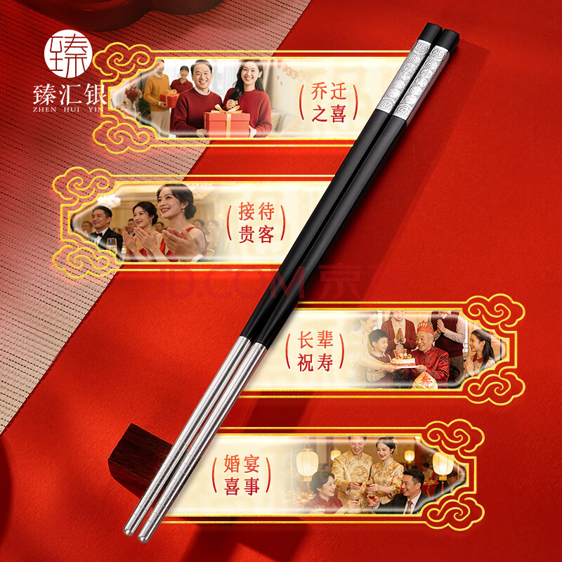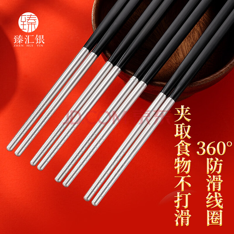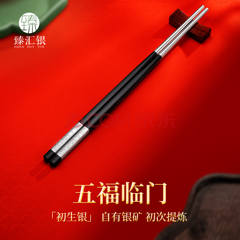商品相册:臻汇银999足银筷子五福临门家用简约银餐具礼盒装送父母长辈家人第1张/共6