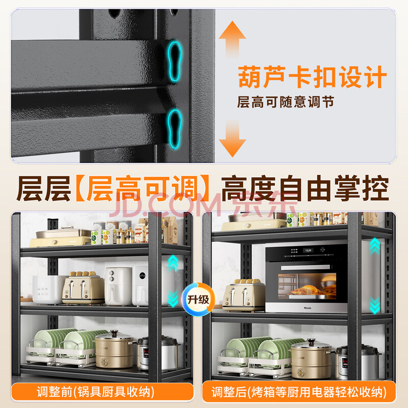商品相册:佳帮手【谢霆锋推荐】厨房置物架落地微波炉架多功能锅架储物架货柜橱柜第1张/共9