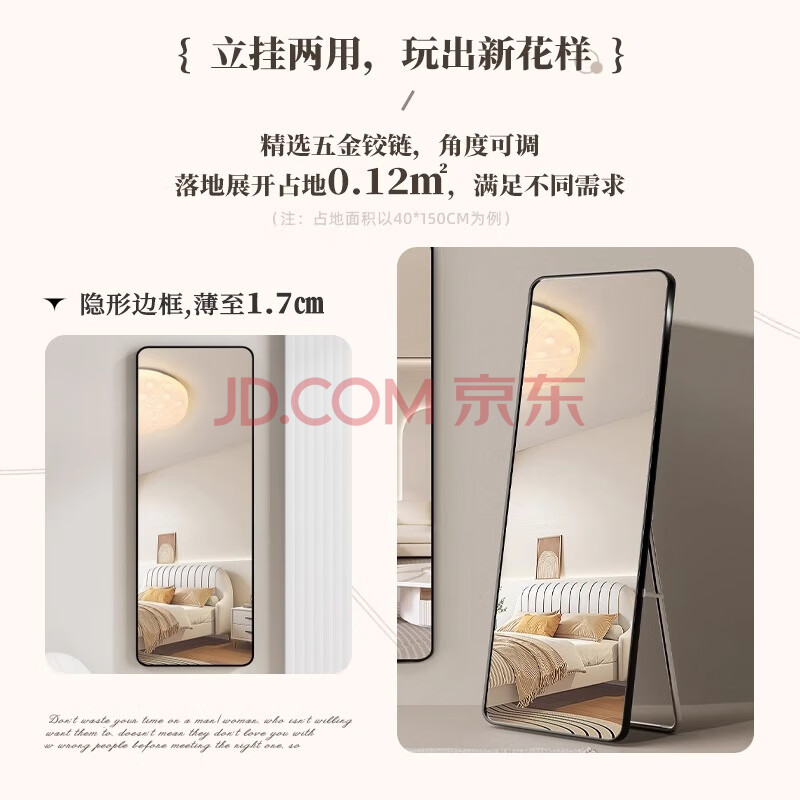 商品相册:摩霄穿衣镜全身落地镜卧室玄关家用壁挂立体试衣镜ins风大镜子60宽黑第