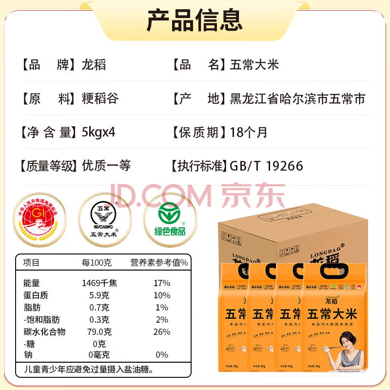 商品相册:龙稻【绿色 五常大米】40斤 当季新米东北正宗家庭装长粒粳米第