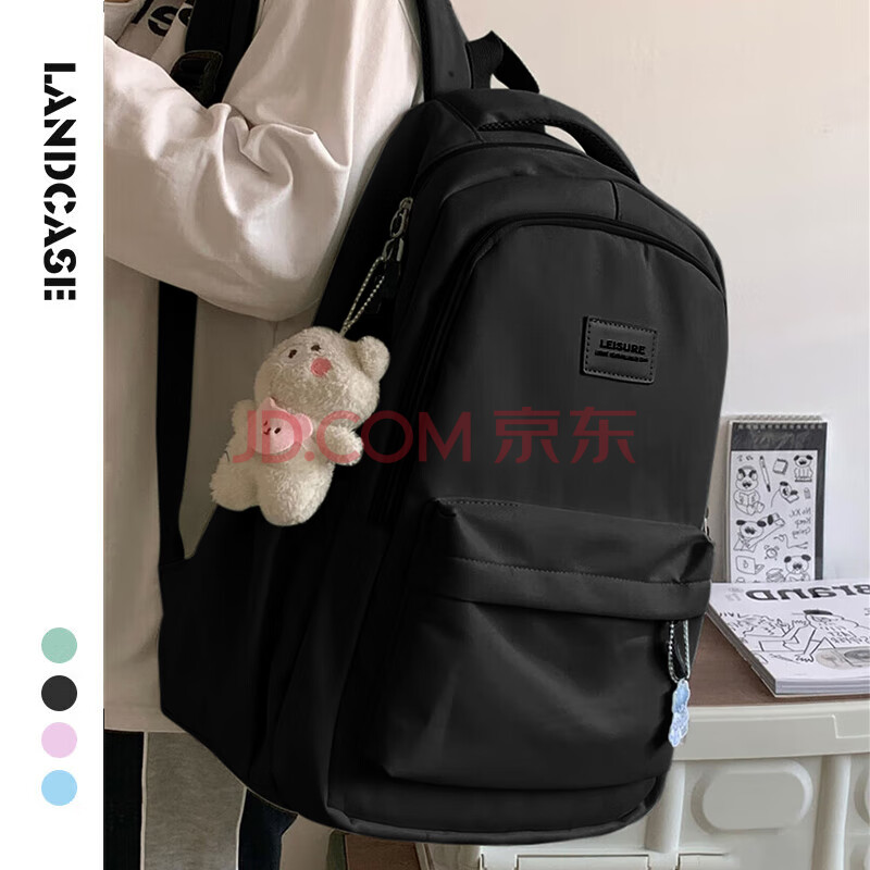 商品相册:Landcase书包初中生女高中大学生校园高颜值背包双肩包电脑包 1606黑色第