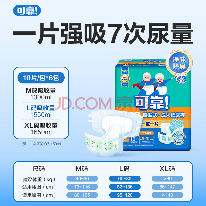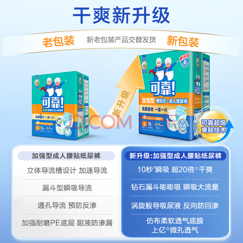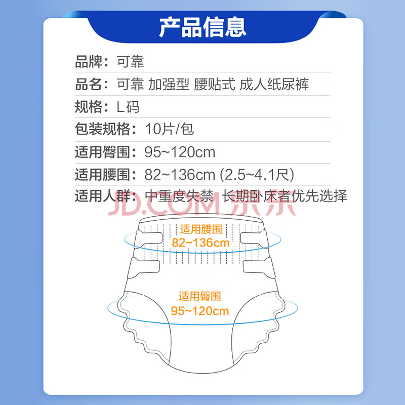 商品相册:可靠(COCO)加强型成人纸尿裤L10片 臀围95-120cm夜用加厚老年人粘扣式尿不湿第