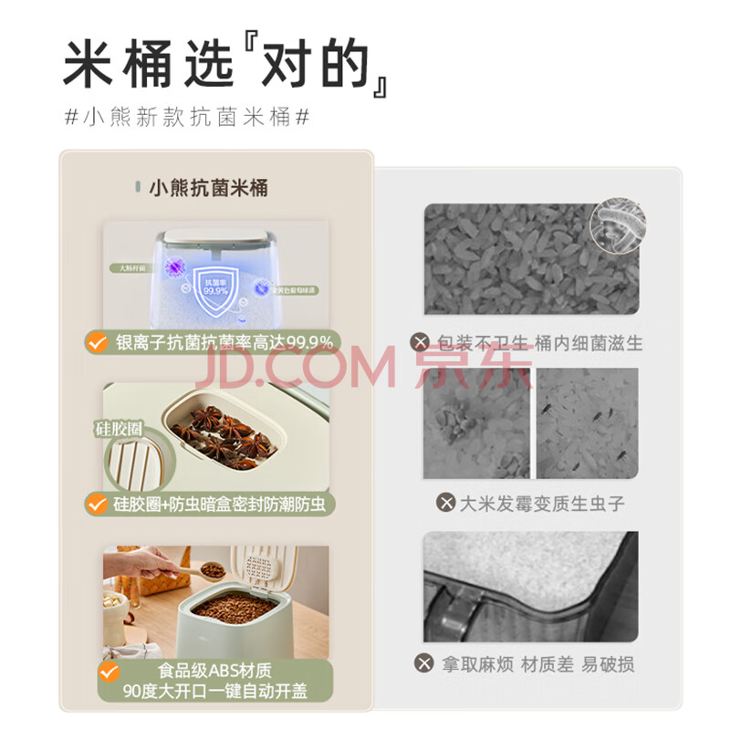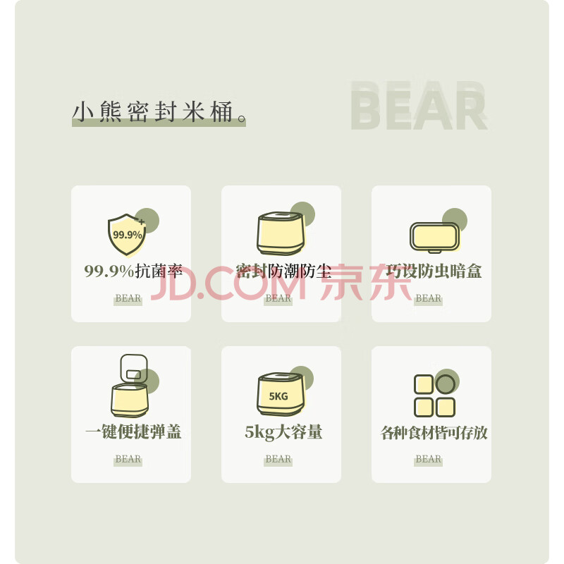 商品相册:小熊(Bear)米桶 厨房密封防潮杂粮收纳盒防虫米缸储米箱可储存10斤 CX-W0062第