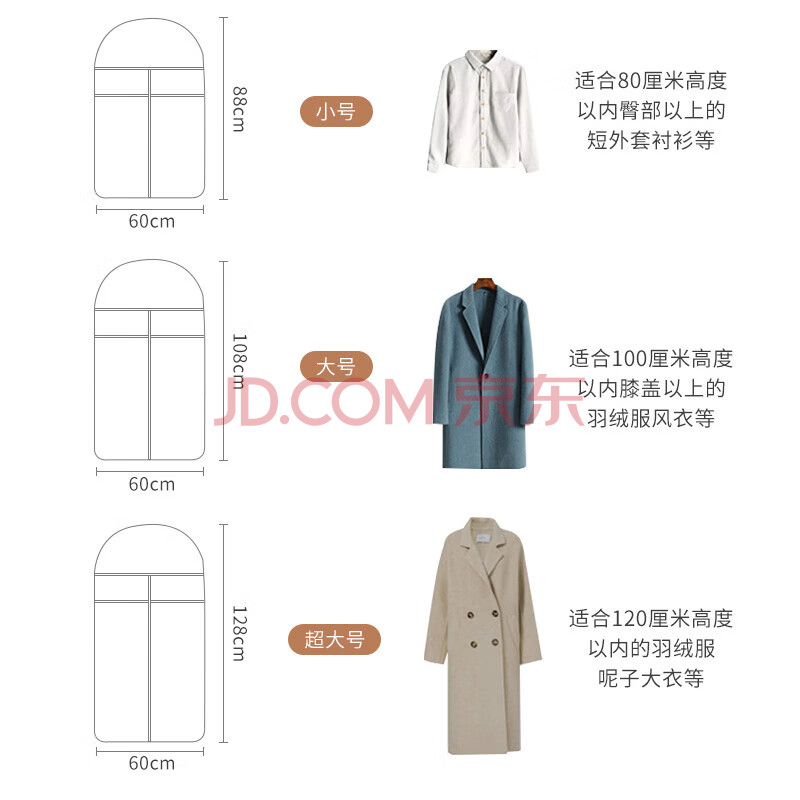商品相册:JEKO&JEKO衣服防尘罩防尘袋5件套大衣羽绒服衣物收纳袋透明衣罩挂衣袋灰色第