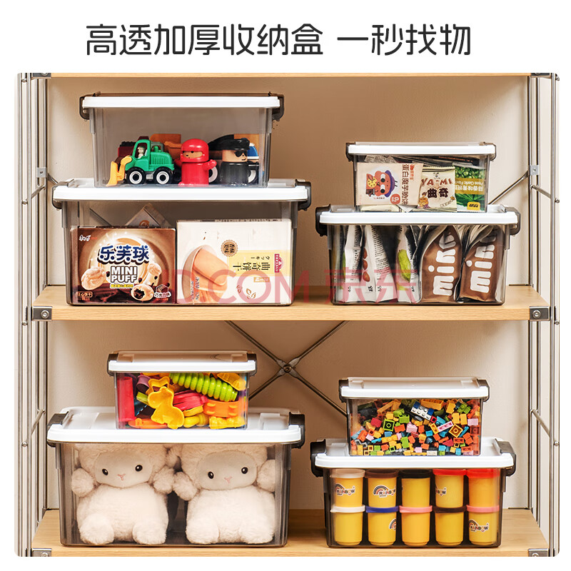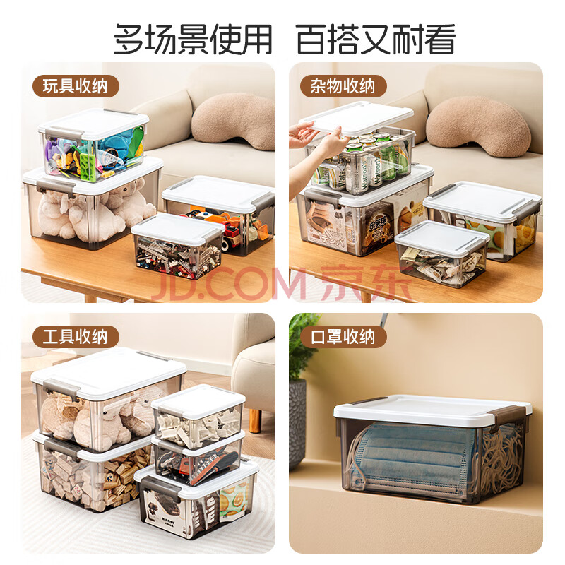 商品相册:禧天龙桌面收纳盒多功能透明收纳盒带盖玩具零食储物盒 烟熏灰7升3个装第