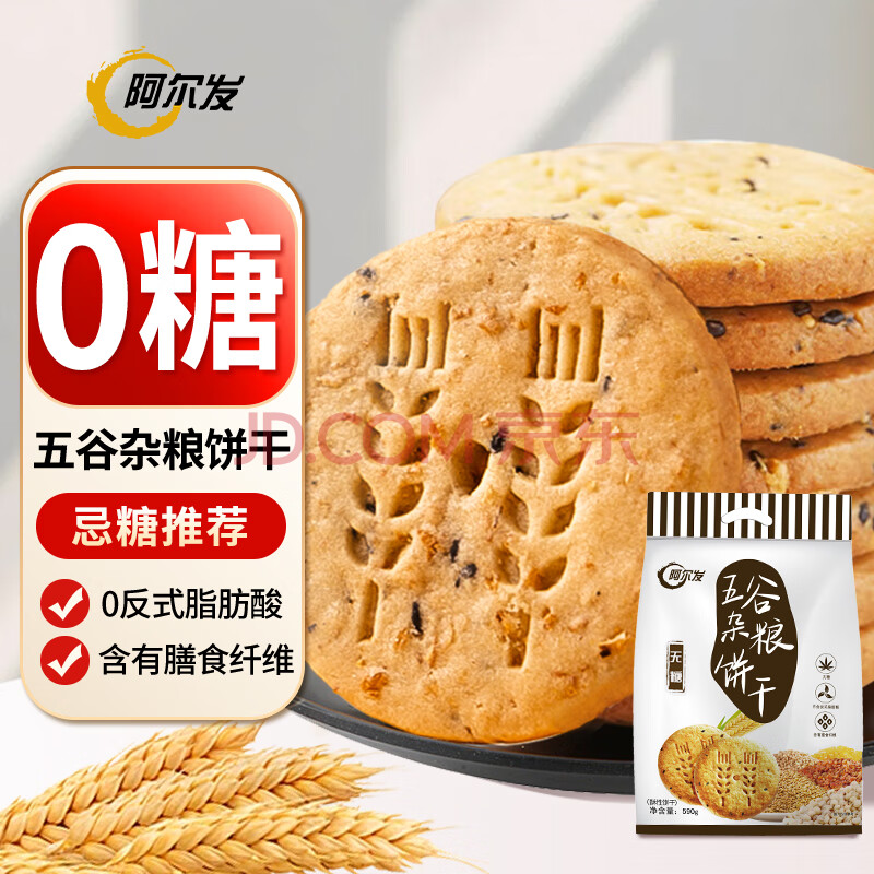 商品相册:阿尔发粗粮饼干无糖食品 五谷杂粮饼干590g 零食下午茶早餐代餐黑五第