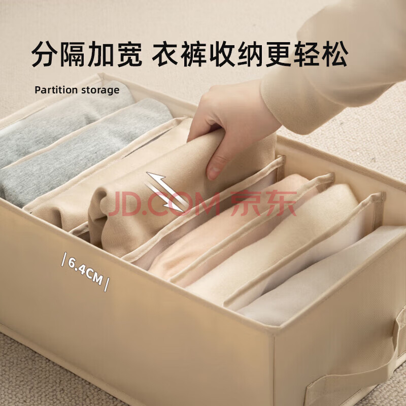 商品相册:EACHY衣服裤子收纳盒子衣柜收纳神器分隔牛仔裤分格整理收纳箱米色12格第1张/共4