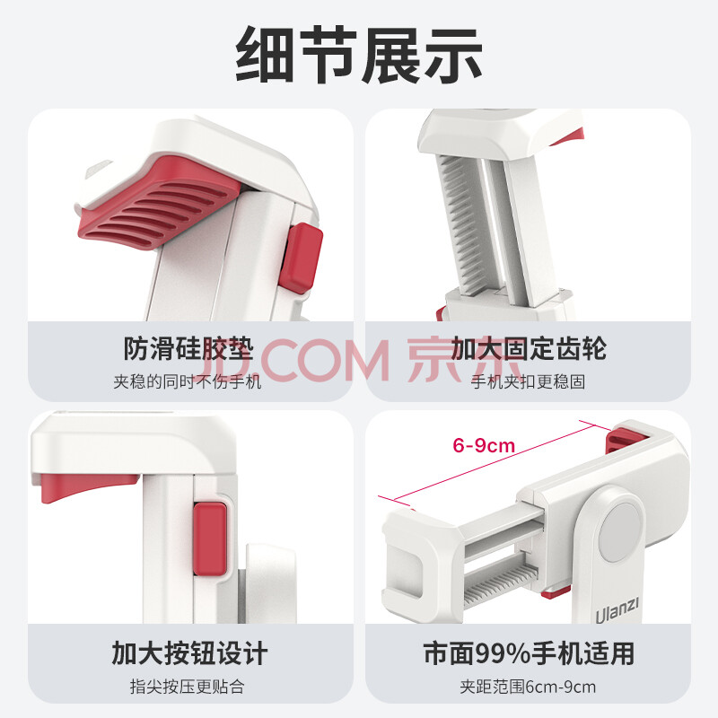 商品相册:ulanzi优篮子 ST-6S(白)升级款横竖拍旋转冷热靴手机夹取景翻转屏监视器手机VLOG单反相机多功能摄影夹第1张/共5