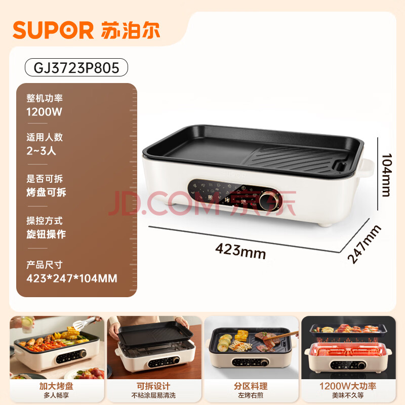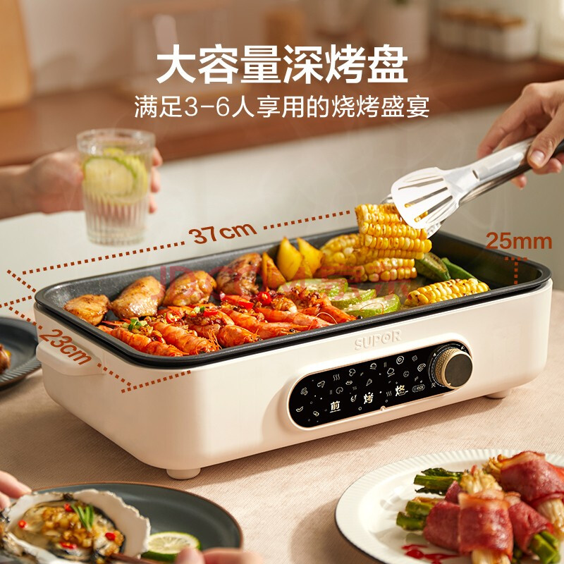 商品相册:苏泊尔(SUPOR)烤肉锅电烤盘 家用电烧烤炉电烤炉多功能锅烤串烤肉一体不沾烤串机可拆3-5人用GJ3723P805第