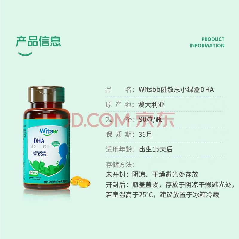 商品相册:witsbb藻油dha90粒100mg/粒0岁以上可食DHA 进口第
