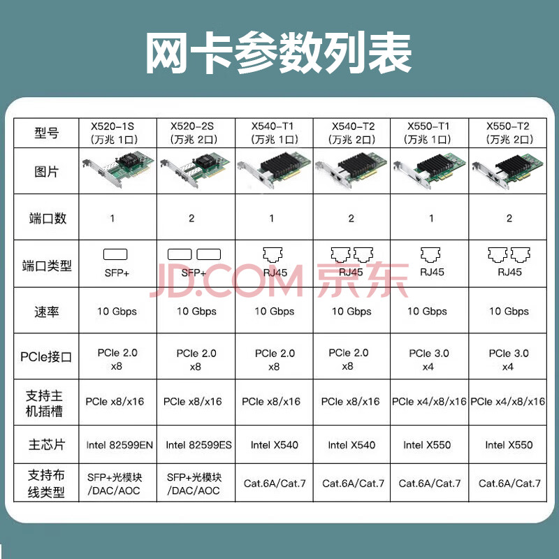 商品相册:万兆通光电 万兆网卡光口 intel X520-DA1芯片 10G光纤网卡 服务器网卡 82599EN芯片 PCIE网卡第
