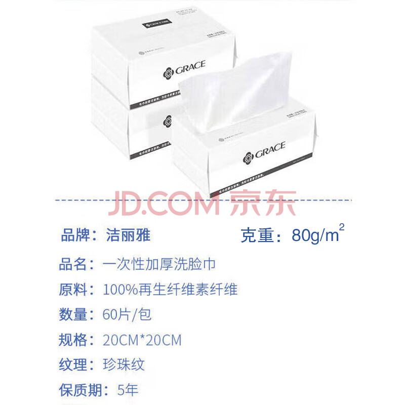 商品相册:洁丽雅(Grace)一次性洗脸巾女加厚化妆洁面洗面巾3D珍珠纹擦脸巾3连包 60抽/包第1张/共4