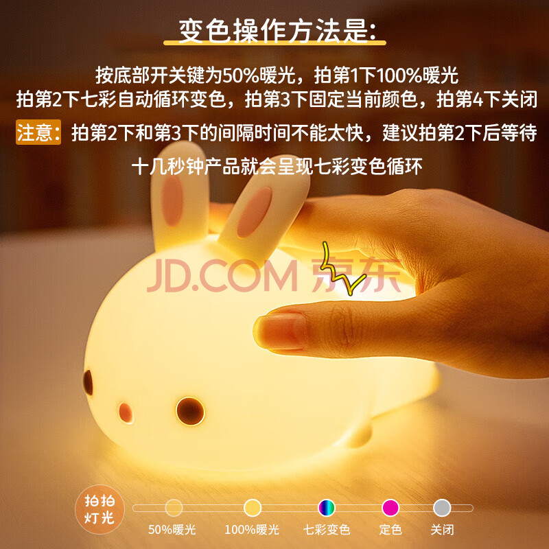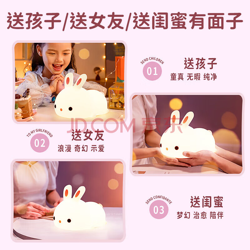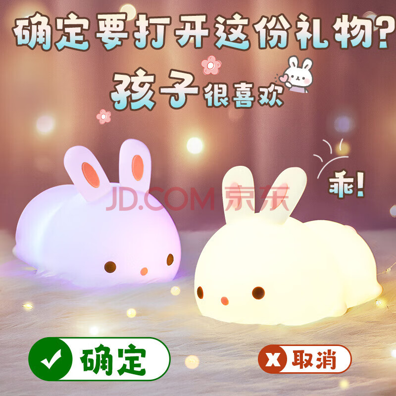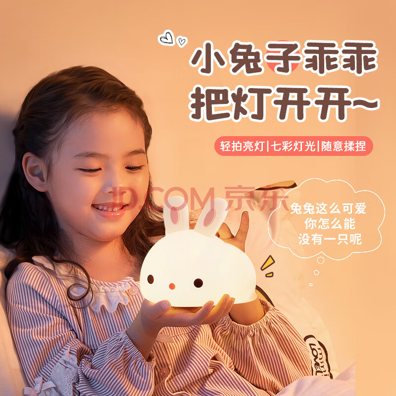 商品相册:酷火兔子小夜灯卧室睡眠灯解压玩具女孩生日礼物7-14高档实用女生女童第