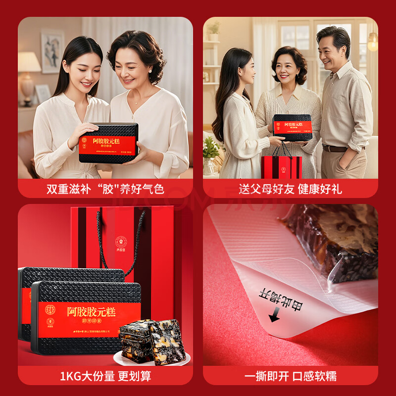 商品相册:同仁堂阿胶阿胶糕礼盒滋补品气血女送长辈妈妈生日礼物改良胶元糕500g*2第