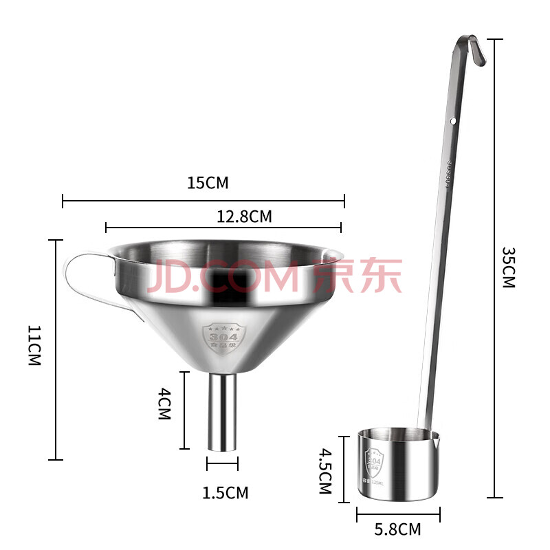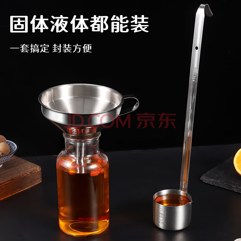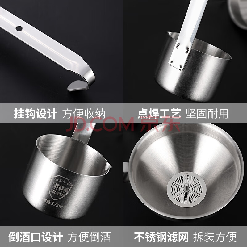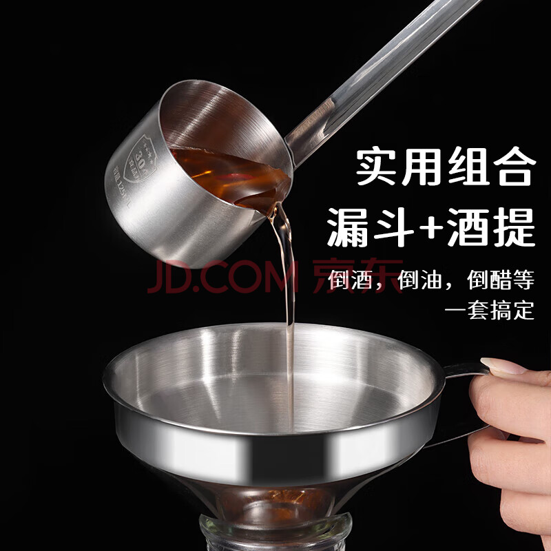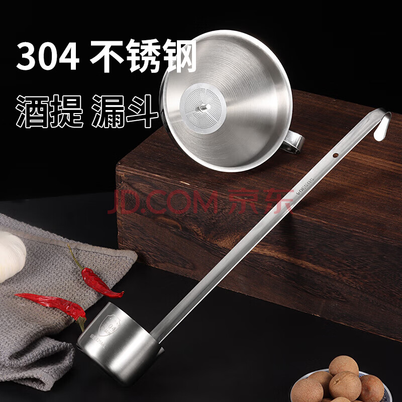 商品相册:拜杰304不锈钢酒提子漏斗 量酒器带过滤网漏斗酒吊打油勺打酒器套装第1张/共8