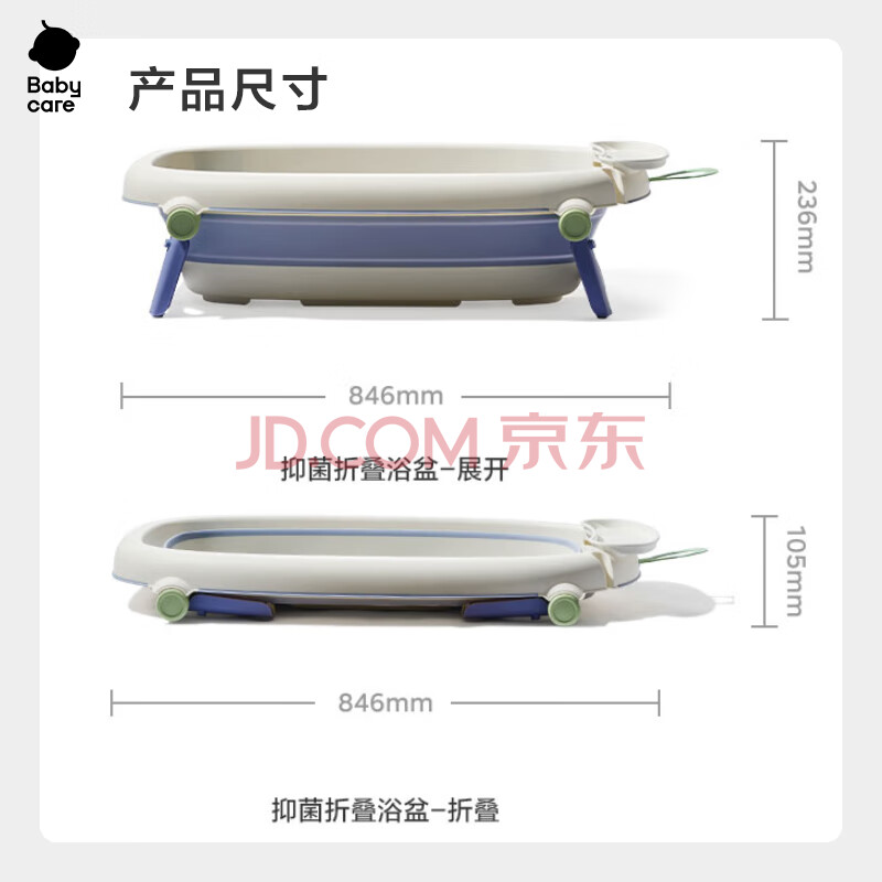 商品相册:babycare婴儿洗澡盆坐浴盆洗澡神器可折叠浴盆游泳洗澡桶浴盆+浴垫 冰川蓝第1张/共6