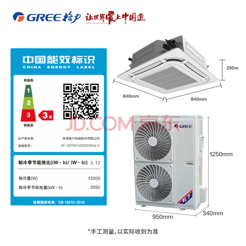 商品相册:格力(GREE)中央空调5匹p一拖一天花机三级能效商用商铺办公嵌入式吸顶定频第1张/共8