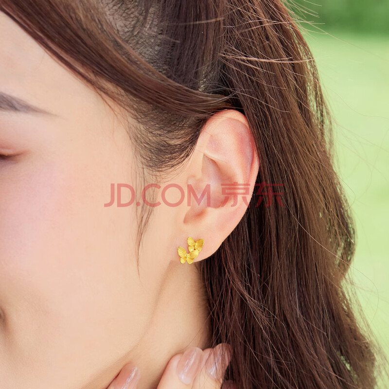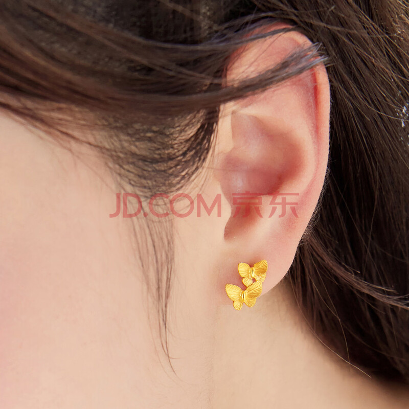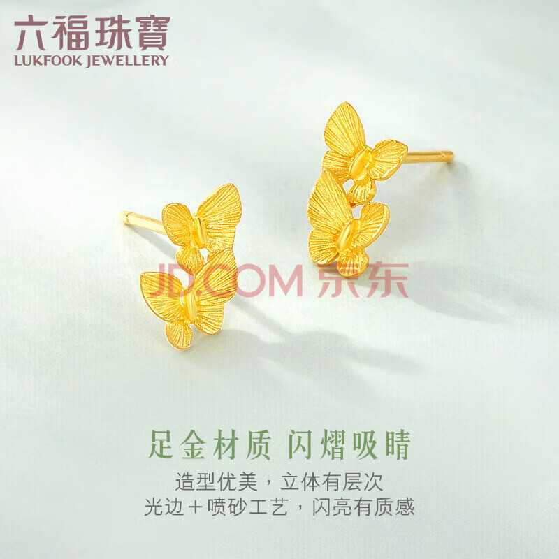 商品相册:六福珠宝 黄金耳钉实心蝴蝶足金耳饰 计价 L07TBGE0015 约2.17克第