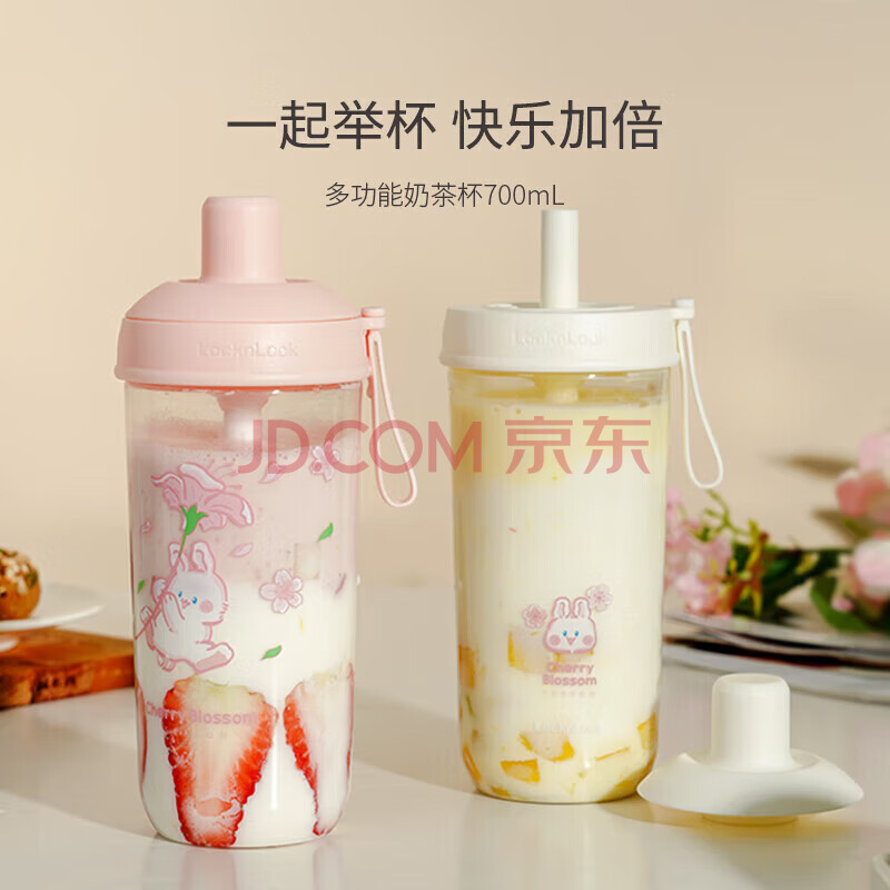 商品相册:乐扣乐扣(LOCK&LOCK)夏天塑料水杯樱花奶茶杯带吸管户外便携提手男女杯子700mL粉色第